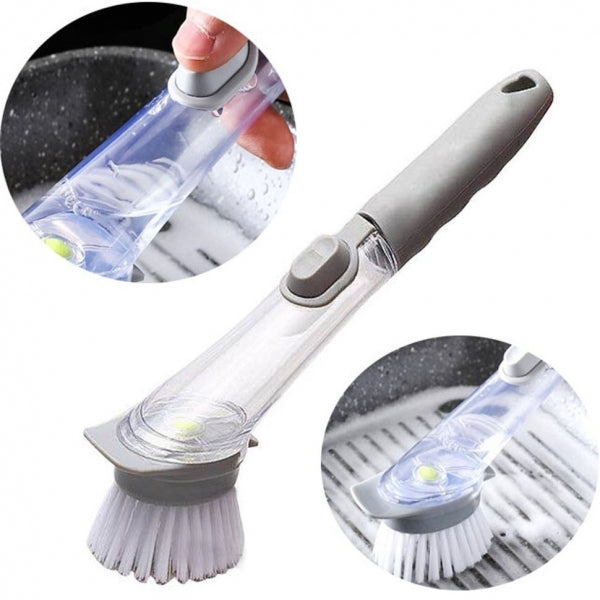 Escova com Dispensador 2 em 1Mantenha a sua pia organizada e a loiça impecável com este acessório prático. Combina esponja e escova, ideal para facilitar a limpeza diária, com um dispensador que adiciona o detergente diretamente durante a lavagem.Características:Design 2 em 1: esponja e escova intercambiáveis.Dispensador integrado para adicionar detergente automaticamente.Cabo ergonómico para maior conforto e controle.Escova resistente para remoção de sujidade difícil.Esponja macia que não risca superfícies delicadas.Fácil de recarregar e limpar.