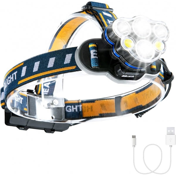 Lanterna Frontal LED Recarregável com Ajuste de IntensidadePerfeita para actividades ao ar livre, a lanterna frontal LED recarregável oferece uma iluminação poderosa e versátil. Seja para caminhadas noturnas, acampamentos ou trabalho em locais escuros, esta lanterna combina conforto e eficiência.Vantagens do ProdutoIluminação Ultra Brilhante: Equipado com LEDs de alta potência para máxima visibilidade.Ajuste de Intensidade: Diferentes modos de luz para adaptar-se a várias situações.Conforto e Ajustabilidade: Fita elástica ajustável para um encaixe perfeito.Resistência à Água: Ideal para todas as condições climáticas.Bateria Recarregável: Inclui cabo USB para carregamento fácil e rápido.Especificações TécnicasMaterial: Plástico ABS e liga de alumínio.Fonte de Luz: LEDs de alta intensidade.Modos de Iluminação: Alto, médio, baixo, e piscar.Alimentação: Bateria recarregável (incluída).Peso: Leve e portátil.Cor: Preto com detalhes em laranja.